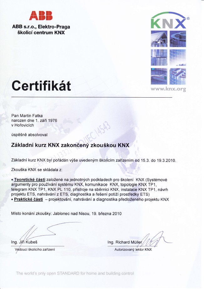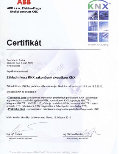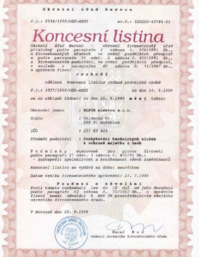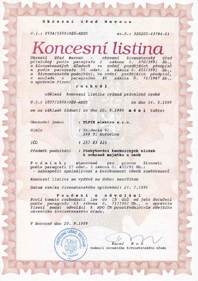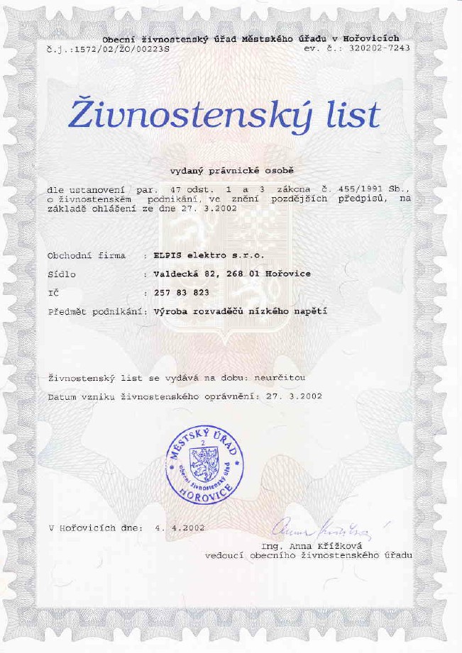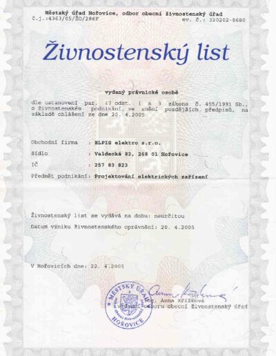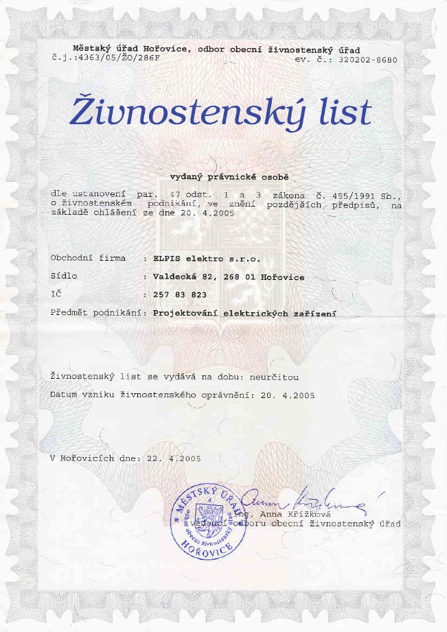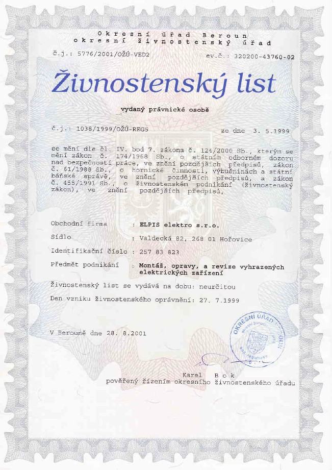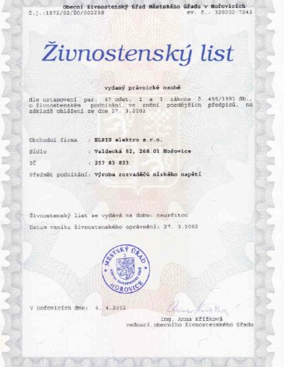 CERTIFIKÁTY ELPIS ELEKTRO, BEROUN